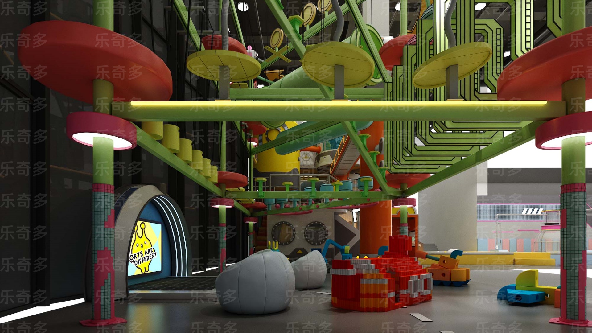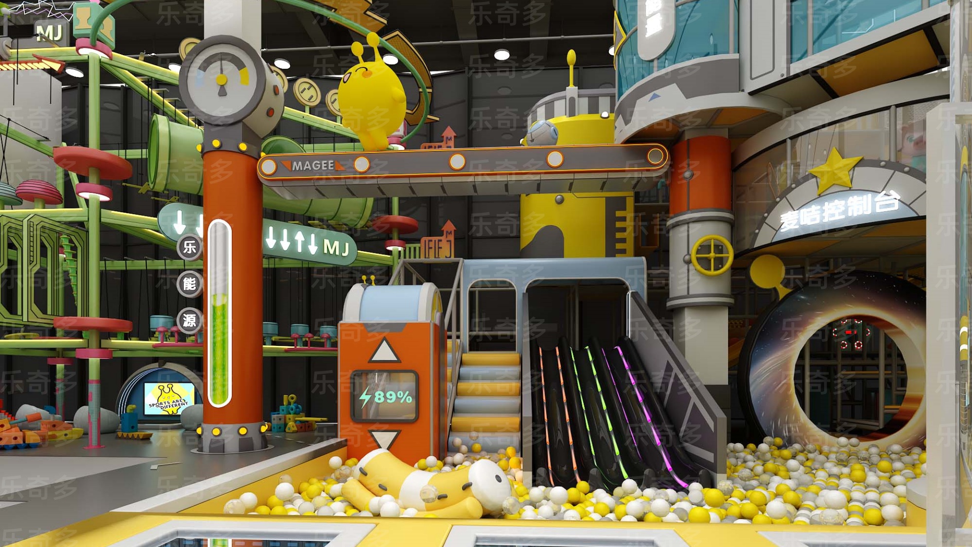 項目玩法:沙池探寶,海洋球池,波浪滑梯,互動投影,組合滑梯,手工區,彈跳迷宮、兒童小蹦床,角色扮演,公主屋,親子餐廳等。
