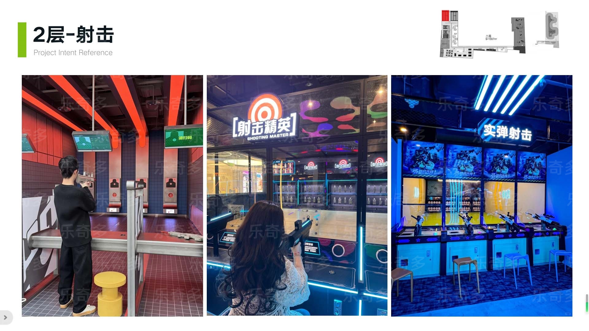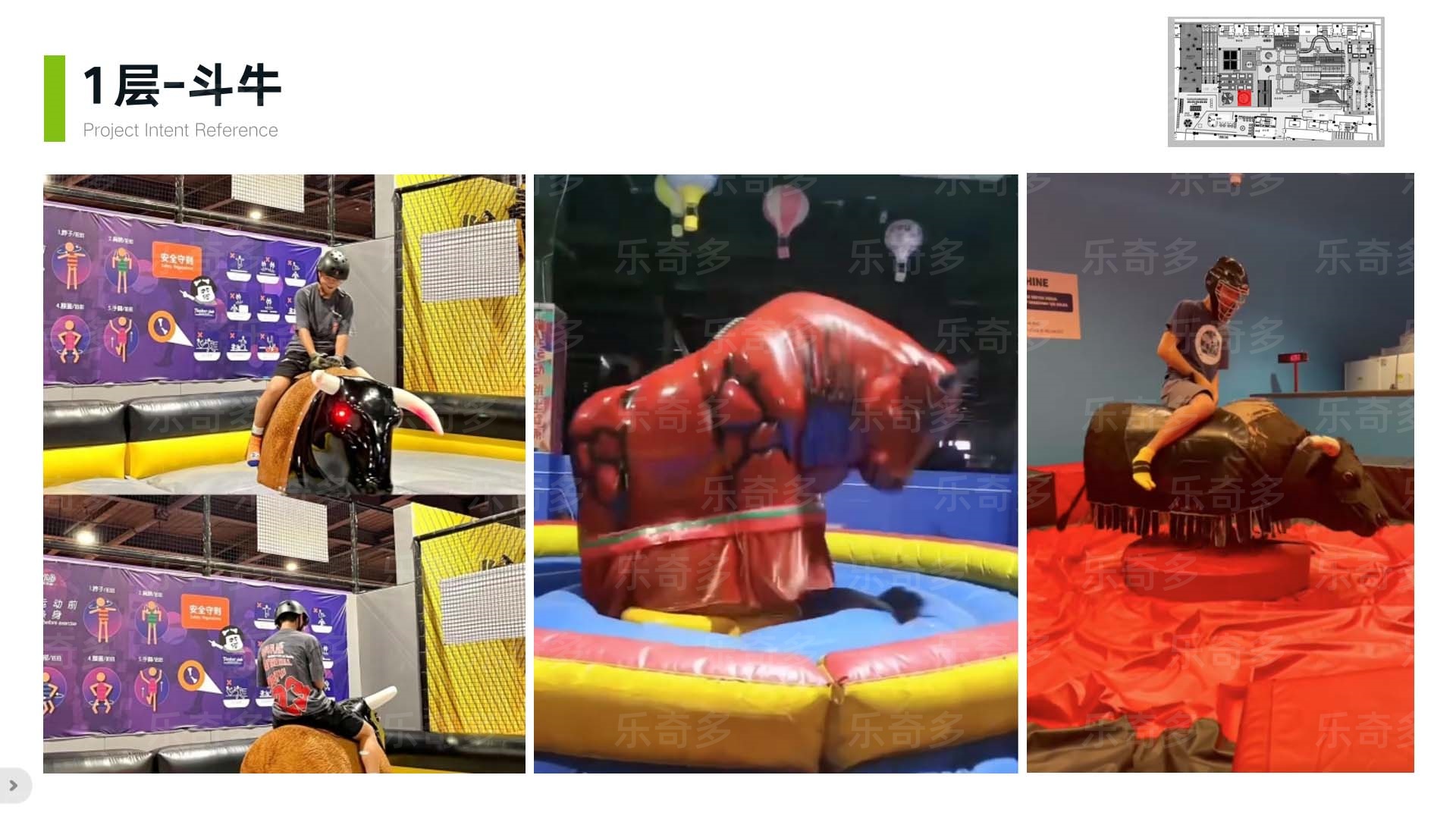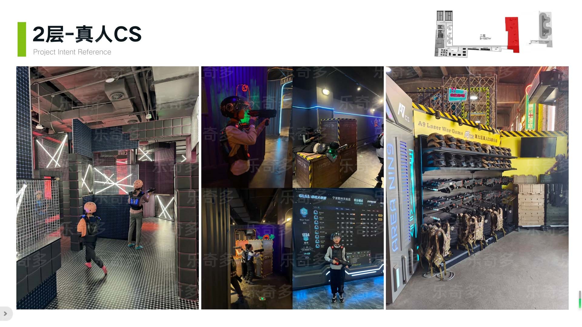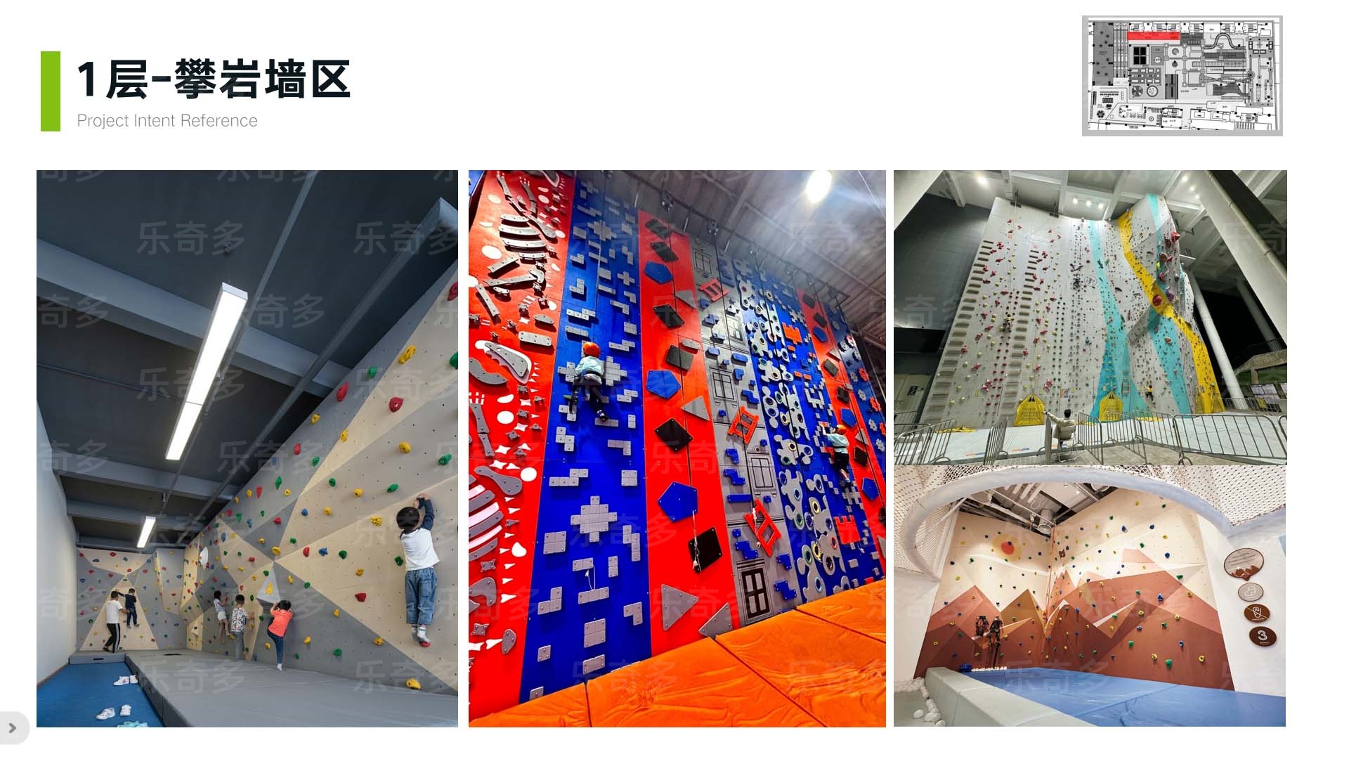 項目玩法:造型打卡點、繞柱螺旋樓梯、牽引球、高空項目樓梯、二三層跳樓機、不銹鋼滑梯、魔方攀巖、趣味攀巖、旱雪滑梯快速通道、旱雪滑梯、360自行車、桁架闖關、激光密室、海綿池對抗、鏡子迷宮等。